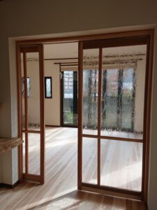 先日お引渡しした改修工事のお家にガラスの建具を制作いたしました。