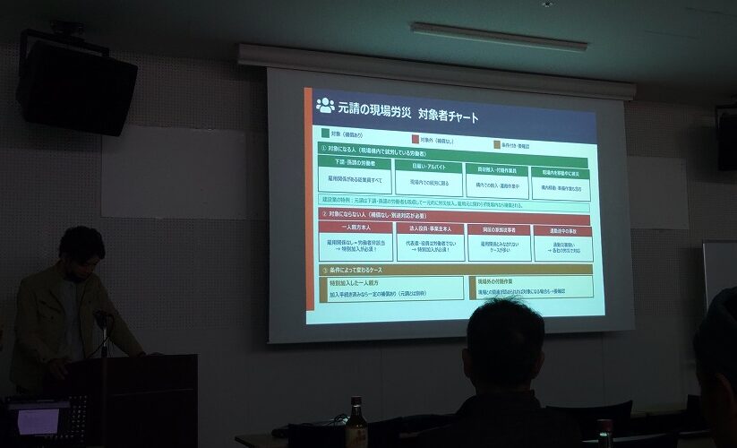 労災の対象についてや事故が起きた時の対処の仕方、危険予防についてを話し合いました。