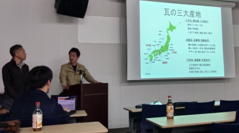 その後、屋根屋さんに協力していただき、瓦の歴史から種類や特徴など様々なお話を伺いました。